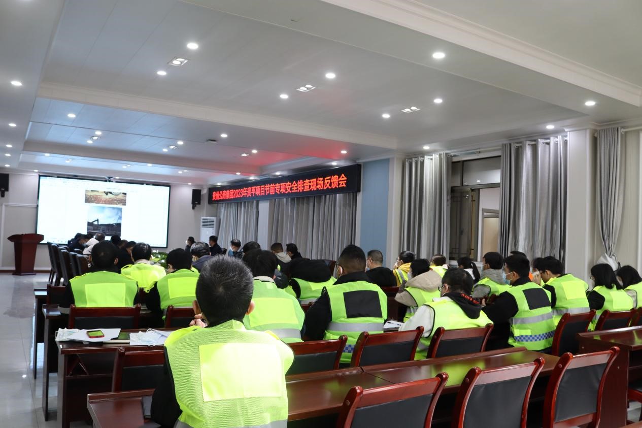在贵平2标召开的贵平项目节前专项安全排查现场反馈会上,集团公司安全总监对安全生产工作作了具体要求,集团第一安全检查组通报了贵平项目专项安全排查存在的问题,贵平各参建项目负责人汇报了项目施工及安全生产工作等情况。
