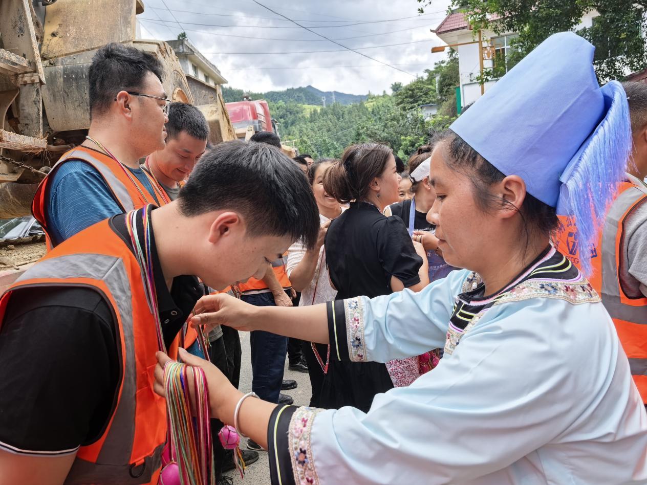 7月3日,随着最后一段受阻道路恢复畅通,星空平台手机版赞助塞尔塔灾毁公路抢通突击队圆满完成榕江县兴华乡、定威乡的抢险保畅任务。得知突击队即将撤离,兴华乡、定威乡上百名身着节日盛装的群众聚集在街口,举行了一场朴实而热烈的欢送仪式。乡亲们将精心准备的染色红鸡蛋送到每一位突击队员手中,以最淳朴的方式,表达对公路集团灾毁公路抢通突击队的感谢。