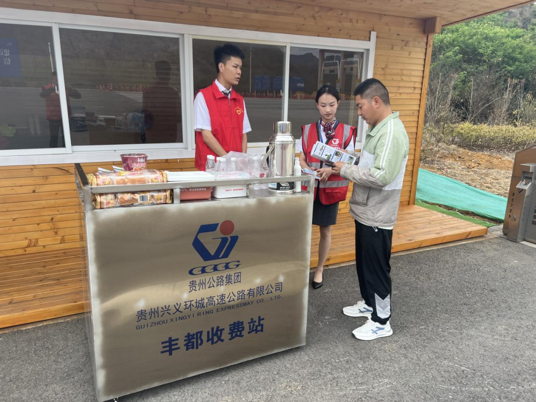“通行遇困难,请找红背心”。“五一”期间,兴义环高沿线服务区和收费站,随时都能看到“红背心”不停地穿梭在车流中。
