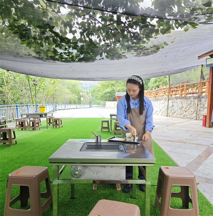 平日里我们是综合部和财务部的工作人员,假日期间我们摇身一变,化身为烧烤区的服务人员与游船售票员,以满腔的热情与诚挚的笑容,服务每一位游客。无论是在日常工作的岗位上,还是在假日服务的角色中,我们都在岗。