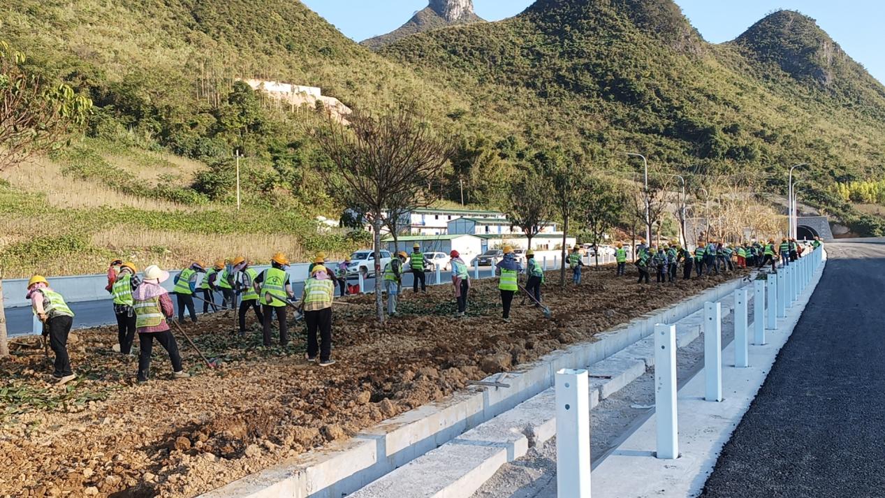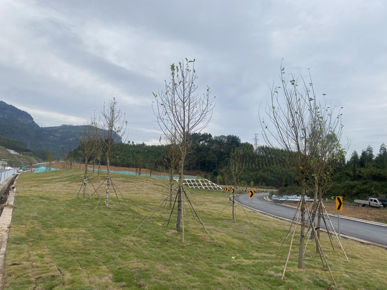 思恩隧道荔波端分离带正在种植苗木