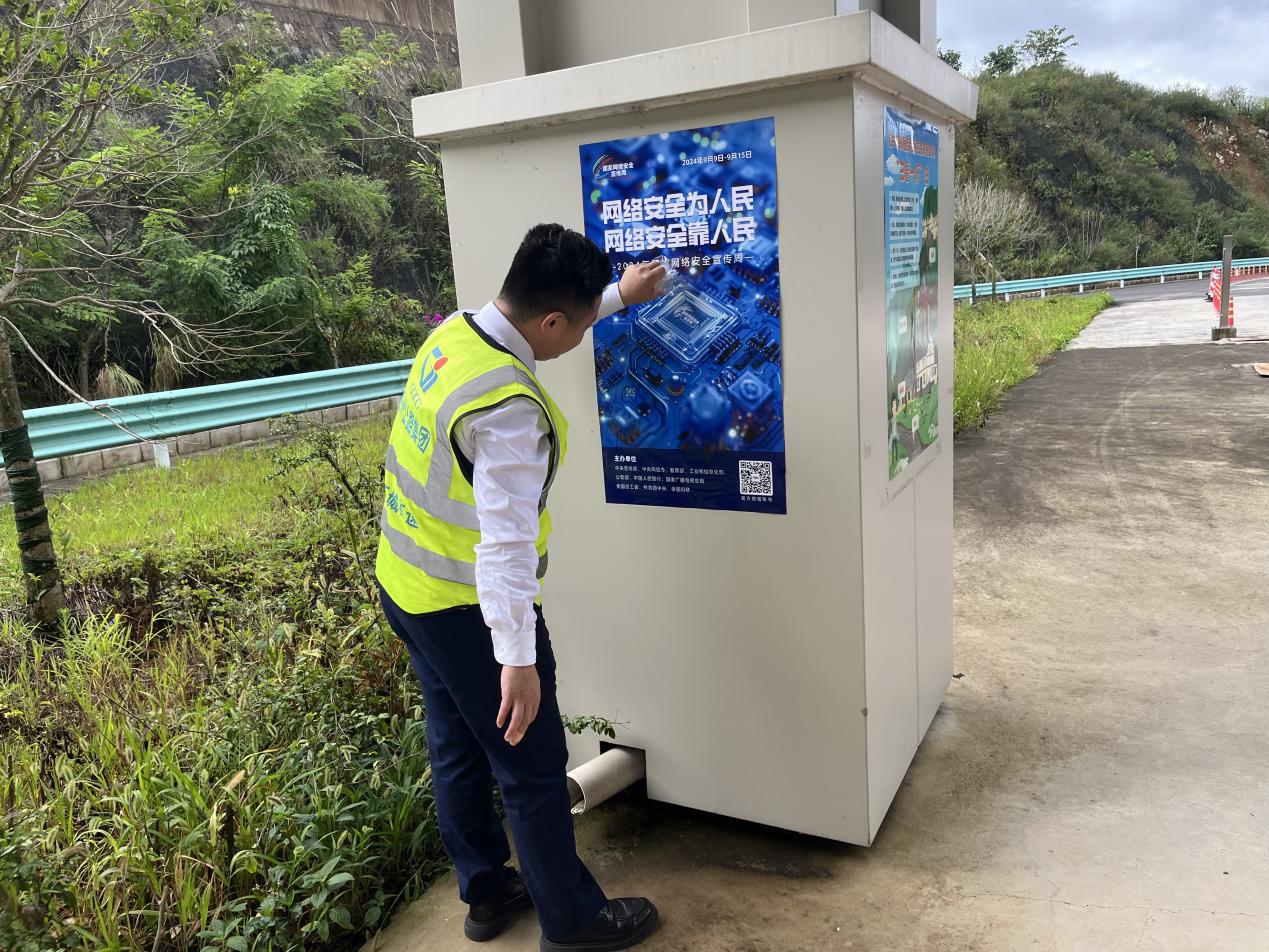 “宣传+多维展示”:兴义环高公司精心布局网络安全宣传标语,在所辖各收费站广场持续向过往司乘人员宣传网络安全意识的重要性。同时,张贴设计精良的海报,以直观生动的形式高效传递网络安全知识;充分利用兴义环高沿线LED显示屏,持续滚动播放网络安全宣传标语,不断拓展宣传覆盖面,全力营造出浓厚的网络安全宣传氛围。
