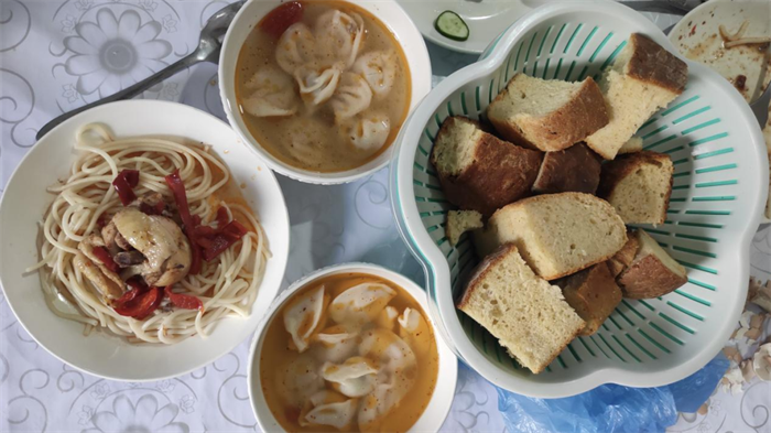中午,大家都带着疲惫的神情,揉着被晒得通红的双眼,迈着沉重的步伐回到了拌合站办公室,我心想,美食一定能治愈大家。可不曾想,一份拉面、几碗饺子、几块囊就凑成了10个人的午饭,他们却丝毫不抱怨环境的艰苦,吃得喷香。我问王文进:“你们生活工作中有没有遇到什么困难?公司一定会尽心尽力地去解决!”他却摇了摇头,坚定地看着我,“都可以克服!”这句话如同一柄重锤击打在我心间,久久难以忘怀。乃至在项目部工作生活的几天里,我从未听见过一句抱怨与不满,每一个同事们脸上都洋溢着热情乐观的笑容,他们是如此的团结而和谐。
