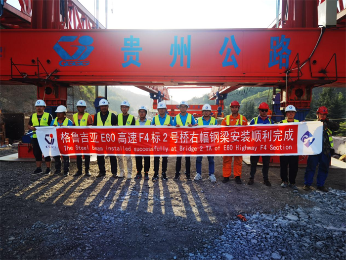 格鲁吉亚2号桥右幅钢梁吊装完成