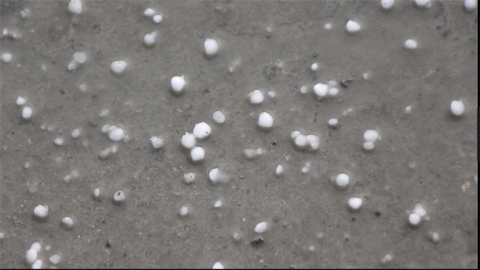 在施工现场工作时,前一秒我们还兴致勃勃的站在隧道口拍摄布然特大桥,下一秒,疾风四起,道旗被刮得呼呼作响,不一会拇指大小的冰雹伴随雨水从天而降,天色也骤然暗了下来,大家纷纷到隧道里躲避。直至地上的冰雹融化,天上的乌云逐渐散开,大家重新回到工作岗位,继续手上的工作。