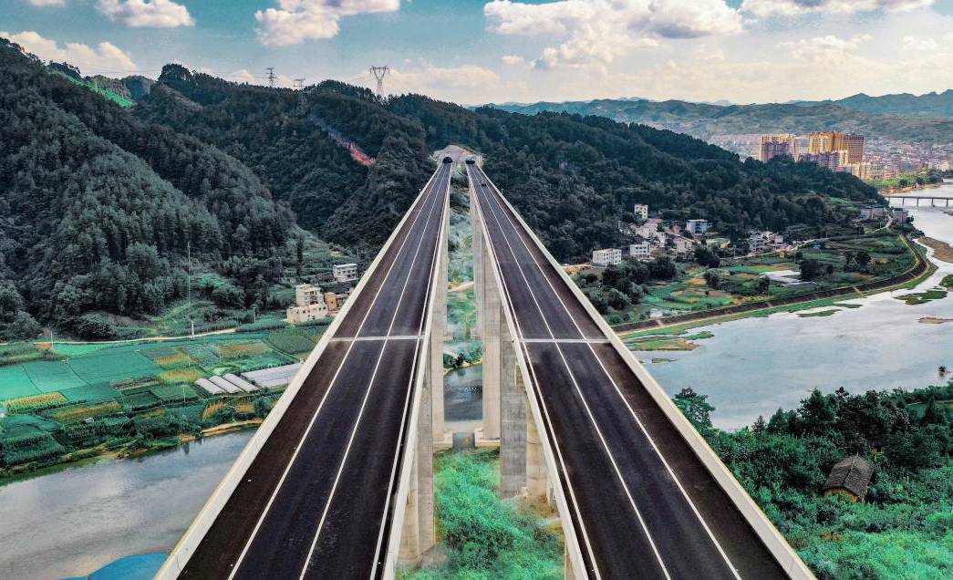 作为全线重点控制性工程的舞阳河特大桥,全长1027.6米,桥梁结构为6×40米T梁+85+2×160+85+7×40米T梁;主墩位于舞阳河中央,左幅7号墩最高达97米。