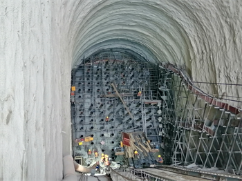 而在主塔下横梁的平行线山体处隧道锚锭也是异常热闹,工期的紧张,项目部领导做出24小时上班制度,体现了公司铁军精神的作风,也展示了企业文化精神。在项目部管理人员及施工队务24小时加班施工中左、右锚洞第5层锚塞体混凝土于8月8日完成浇筑,期间也少不了我们测量人员加班加点为锚塞体重要预埋件--索道管进行放样校正,因为管道数量多,校正时间长,这也对测量人员的一个挑战。