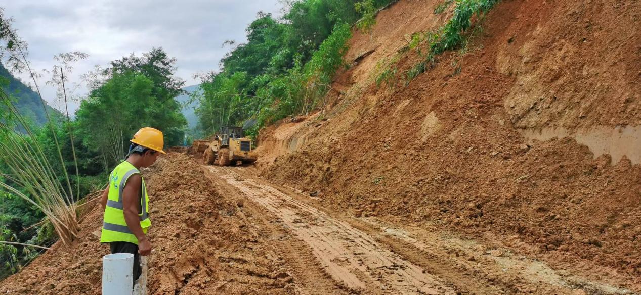打鱼村通往县城的唯一生命通道被多处塌方掩埋,救援车辆、抢修力量受阻。项目部接到村委会求助后,立即组织力量勘查路况,迅速调集7台挖掘机、4台装载机,昼夜不停投入抢通战斗,同步封闭危险路段、设置警示标志。经过24小时连续奋战,25日中午,“生命线”终于被打通,为后续救援和物资输送赢得了黄金时间。