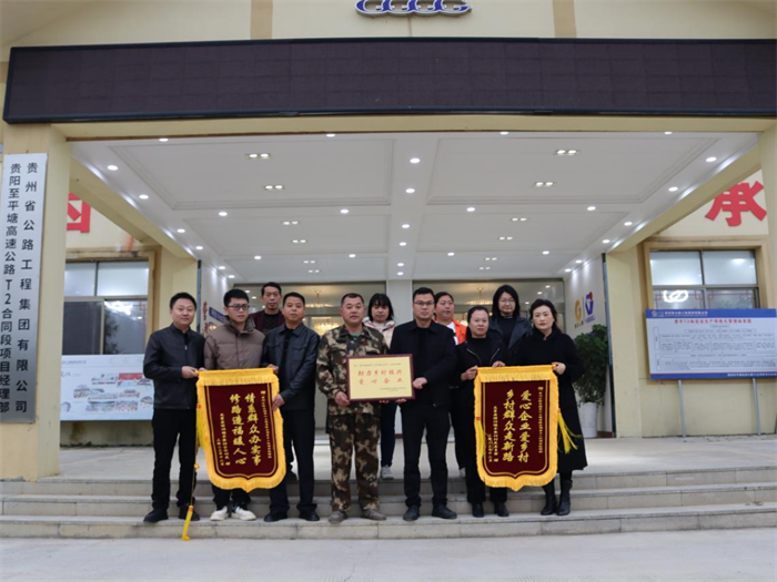 龙里县醒狮镇平寨村支“两委”代表为贵平2标赠予锦旗和牌匾